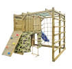 - ścianka wspinaczkowa, - ścianka linowa, - ślizg długości 230 cm, - kosz do koszykówki, - podwójna huśtawka, - pozioma drabinka,