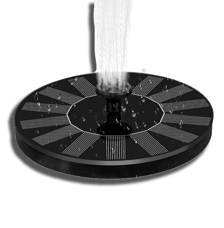 - System ochronny: gdy system ochronny fontanny solarnej wykryje brak wody automatycznie odcina zasilanie i przestaje działać, dlatego ważne jest, aby pompa pływająca cały czas miała dostęp do wody, by jej działanie było jak najbardziej korzystne.