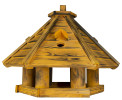 Dach oddzielony od podstawy – wejście przez dziurkę w daszku, piętro lęgowe Sześciokątny, Duża podstawa – pomieści wiele ptaków |