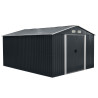 Stalowa narzędziownia o wymiarach 367x301x214 cm (po obrysie dachu) została zaprojektowana z myślą o przestrzeni, która pomoże uporządkować i schować wszystkie niezbędne akcesoria ogrodnicze.