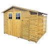Drewniana narzędziownia dwudrzwiowa z drewutnią