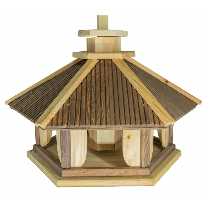 Drewniany karmnik w kształcie sześciokąta pozwoli na obserwację ptaków z każdej strony!