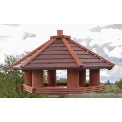 Drewniany karmnik w kształcie sześciokąta pozwoli na obserwację ptaków z każdej strony!